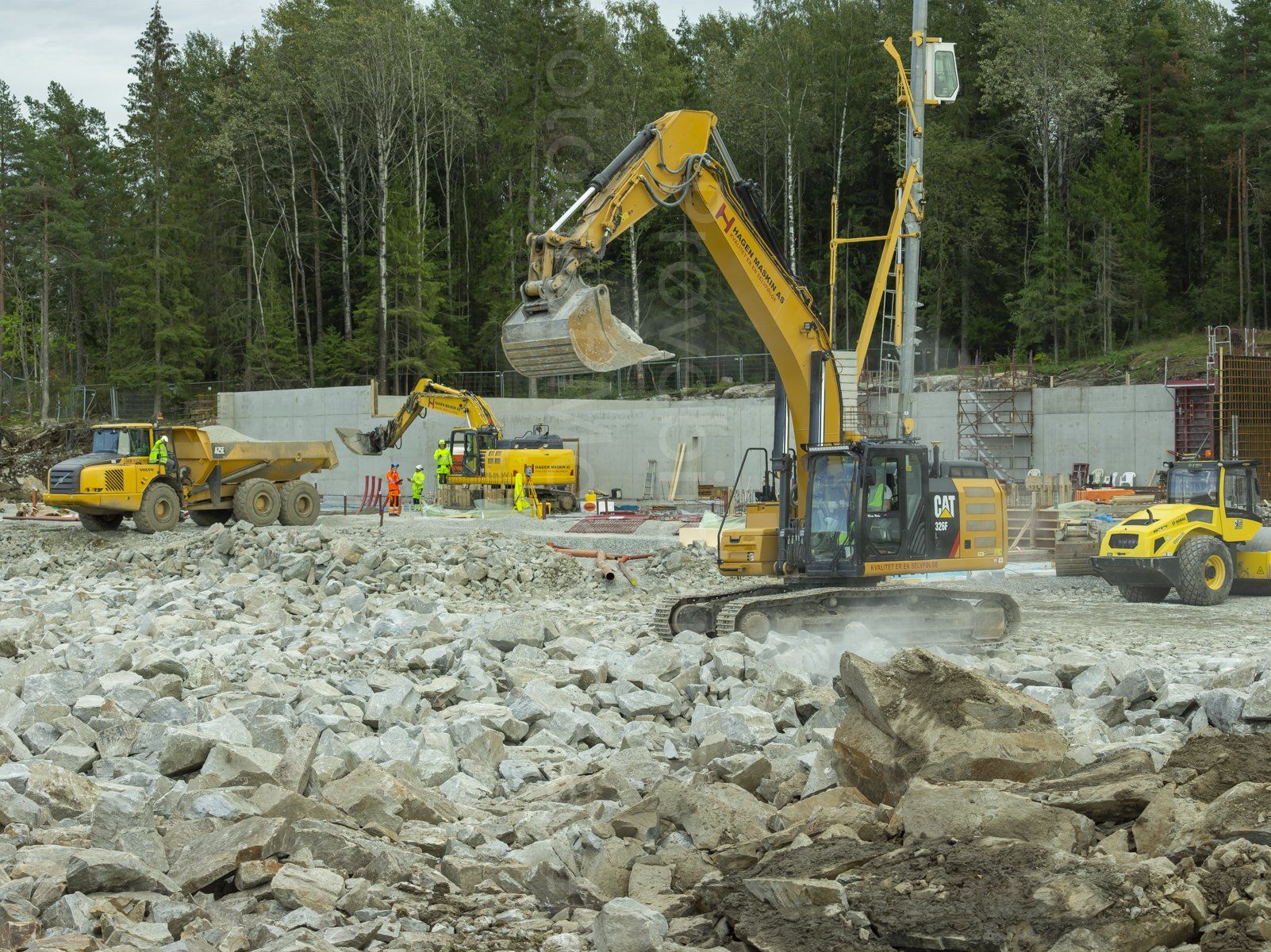 Her leverer vi alt innenfor anleggsarbeid som utgraving av tomter, veier, grunnarbeid for bygg og rehabilitering/nyanlegg av vann og avløpsledninger.